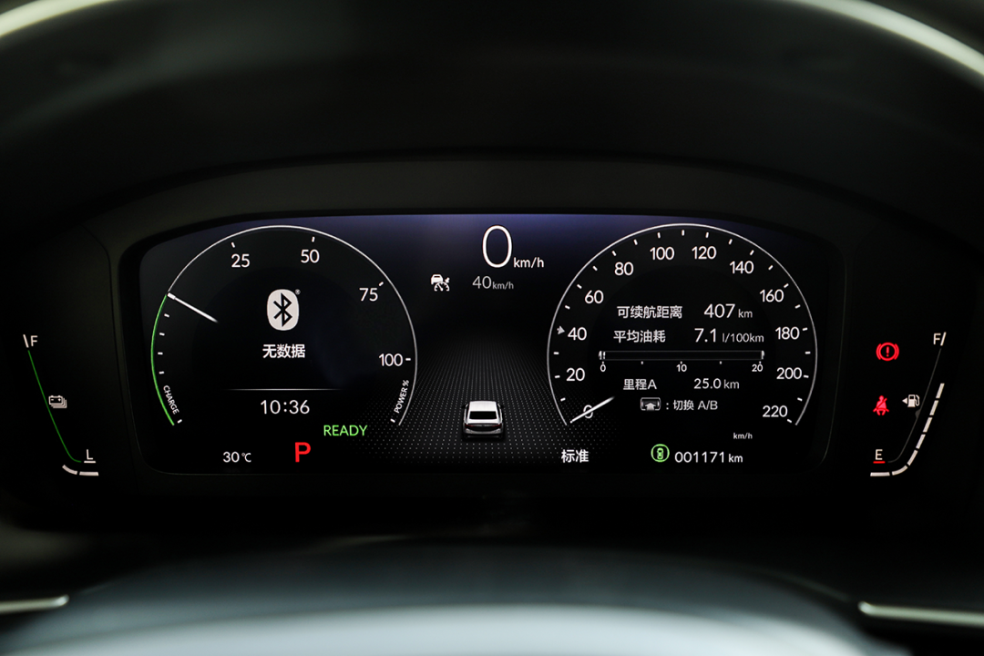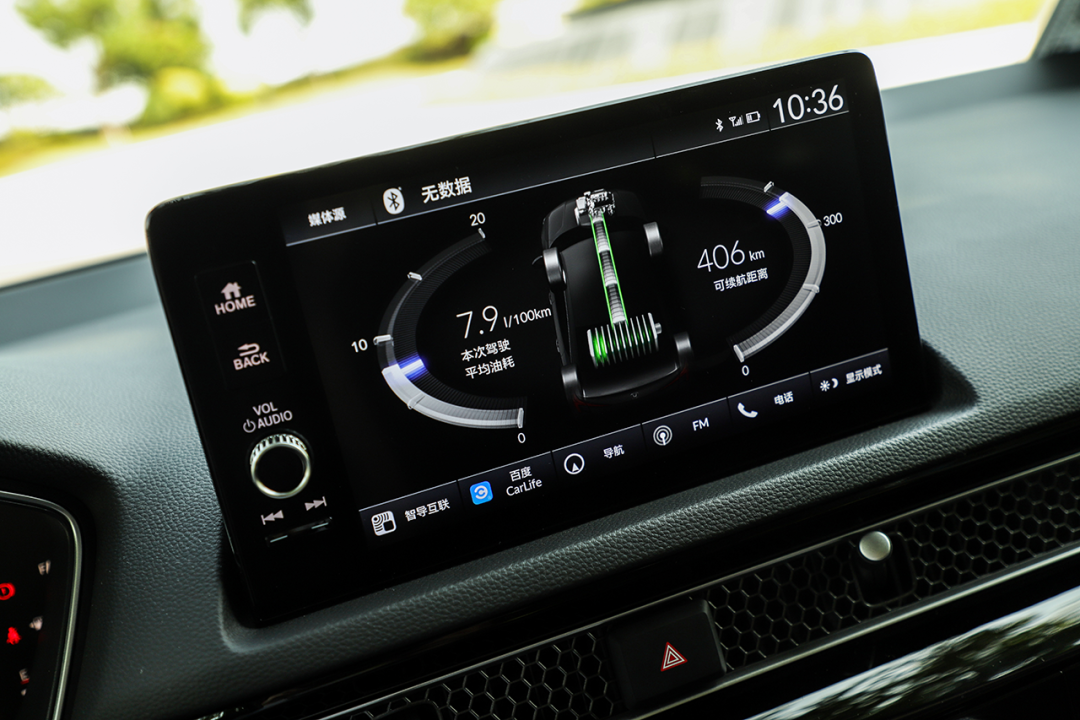 中控屏的尺寸为9英寸,搭载Honda CONNECT 3.0智导互联系统,支持导航、语音识别、远程控制、车家互联、百度CarLife、OTA升级等功能,同时,在中控屏内增加了能量流的显示界面,以方便驾驶者了解行驶时的动力输出工况。