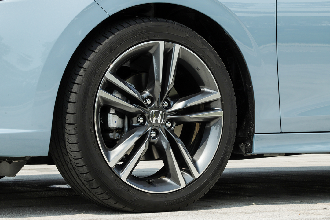 18英寸轮圈没有采用新的设计,在样式和尺寸上均与燃油版保持一致,少了些新鲜感。轮胎方面,与之匹配的是邓禄普SP SPORT MAXX系列轮胎,规格225/45 R18。银色的外后视镜是型格e:HEV的专属设计,有点“奥迪银耳”那味儿了。