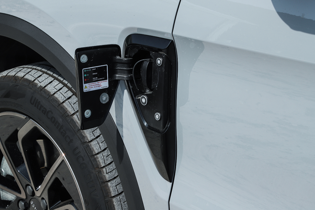 经典的分体式大灯在视觉上更显凶狠,远/近光灯组与时俱进地加入了透镜结构,进一步提升了照明效果。配置方面,自动大灯、自适应远近光、转向头灯等功能应有尽有。额外增加的充电口位于翼子板上的装饰板内部,视觉上被巧妙隐藏,设计挺巧妙。