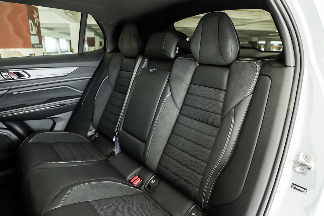 值得一说的是,后排座椅在配色上与前排座椅存在差异,高级感我认为不如前排座椅,但实际乘坐体验没有明显差距,座椅内部的填充物相对扎实,腿部/头部空间都有一定的富裕,乘坐舒适性得到了保证。