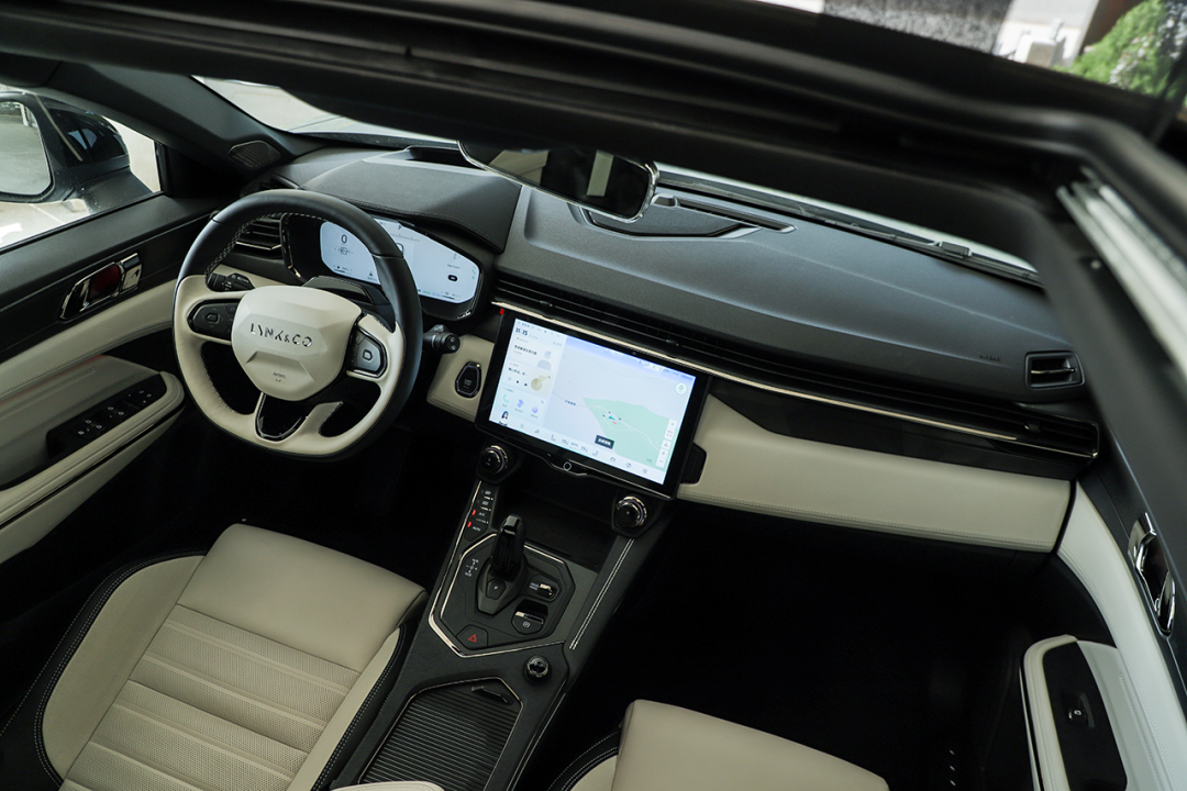 内饰设计给人的新鲜感不算多,但内饰质感依旧是领克的强项,毫不吝啬的用料以及多种不同材质的运用打造出精致、豪华的车厢座舱,在视觉和触觉上都有着很高的水准。同时,在晨曦版车型上,将采用专属的黑/白双拼内饰配色,高级感更为出色。