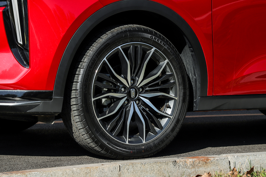 双色轮圈采用多条辐设计,整体样式偏运动且足够耐看,轮圈尺寸达到19英寸,尺寸足够大,轮胎规格为245/45 R19。