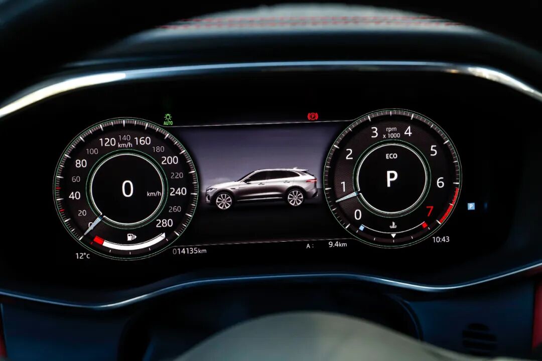 12.3英寸全液晶仪表比较简洁,与路虎部分车型相同,整个功能划分区域比较合理,同时支持多种显示布局,同时还支持全屏投射导航,科技感还是不错的。