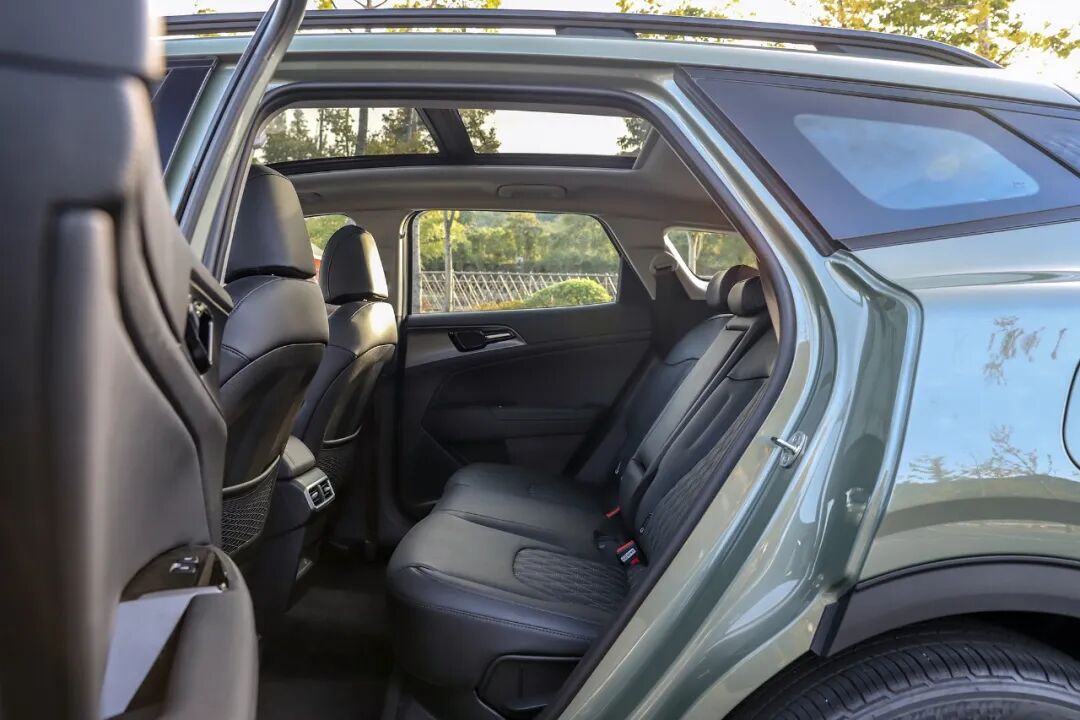 得益于2755mm的轴距,后排腿部空间表现出色,而且座椅靠背角度支持大范围调节,在后排可以拥有不错的乘坐体验。功能方面,除了常规的空调出风口、电源接口、中央扶手、杯架,后排座椅还支持加热。具体乘坐空间,请看下图。