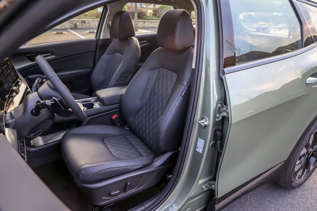 座椅采用真皮包裹,缝线加打孔工艺提升了质感。功能方面,前排座椅具备电动调节、加热、通风功能。主驾驶位置带有座椅记忆,副驾驶座椅配备有“老板键”。