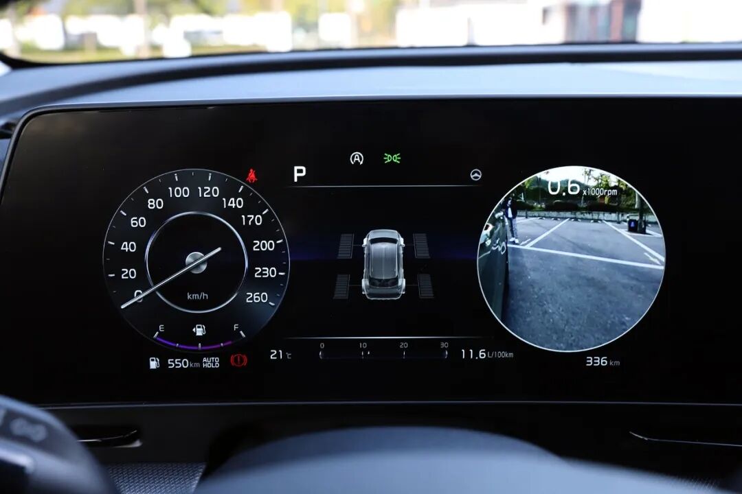 12.3英寸全液晶仪表界面UI简洁,可以显示车侧影像、导航、驾驶辅助、轮胎压力等信息,而且在切换不同驾驶模式时界面UI也会随之变化。