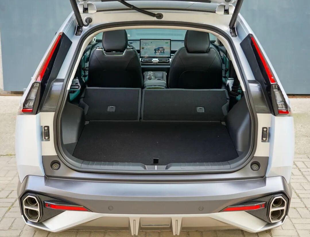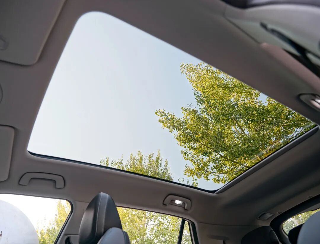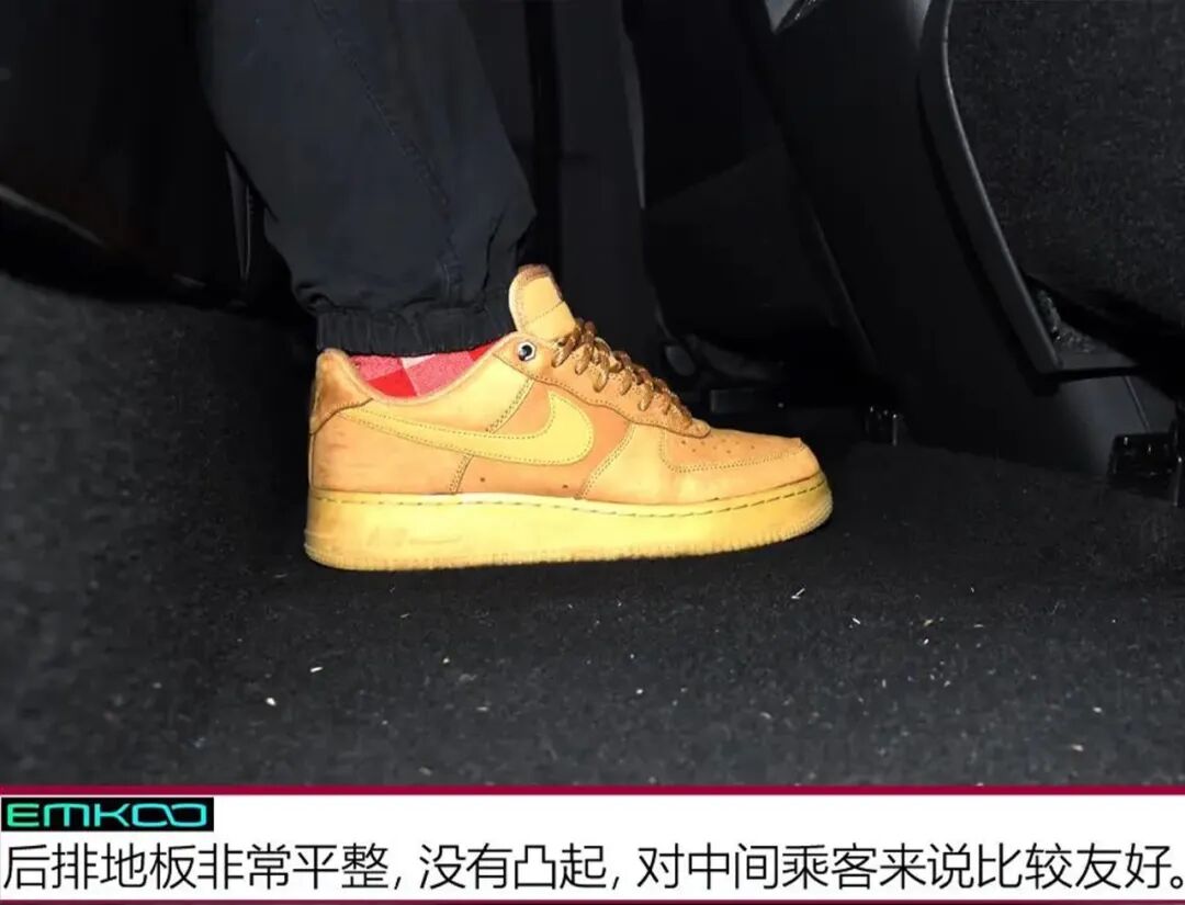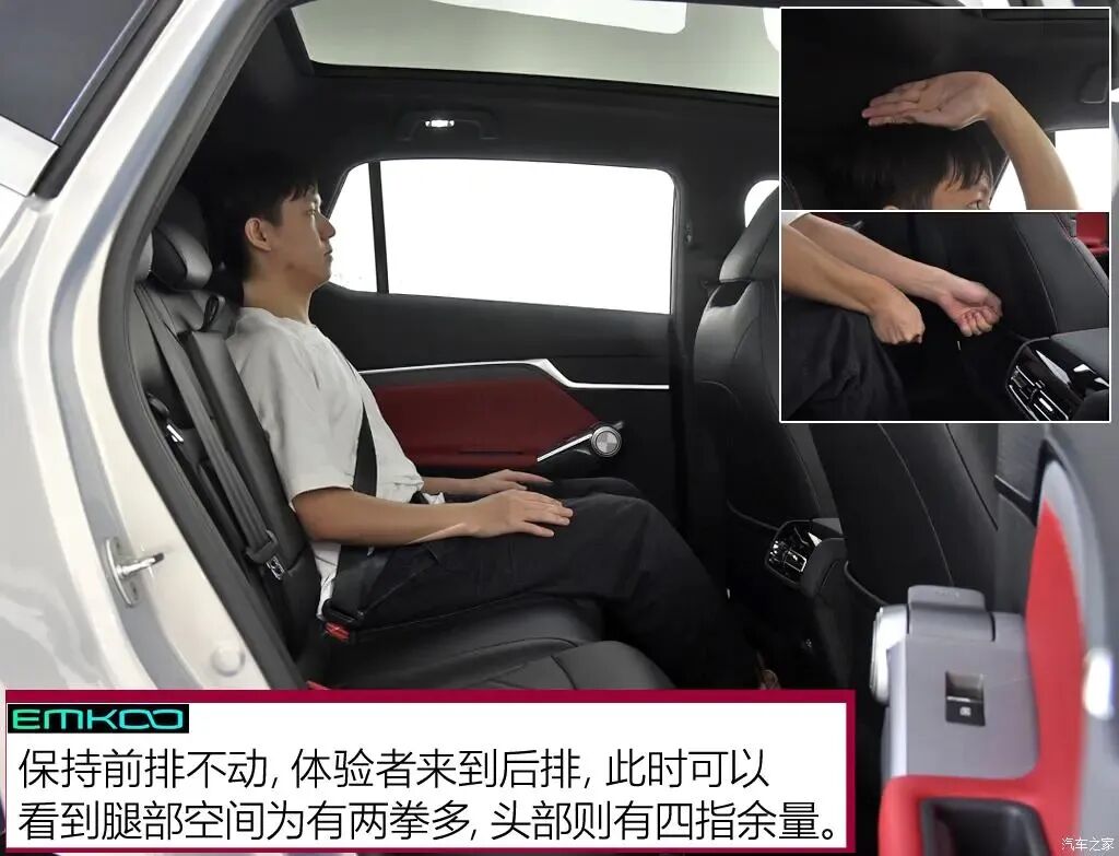 空间表现上,身高175cm的体验者,前后排都可以获得足够充裕的头部空间,后排乘客腿部空间更是达到了2拳有余。后排地板非常平整,对中间乘客更加友好。值得一提的是,新车全系标配全景天幕,这一点值得肯定。