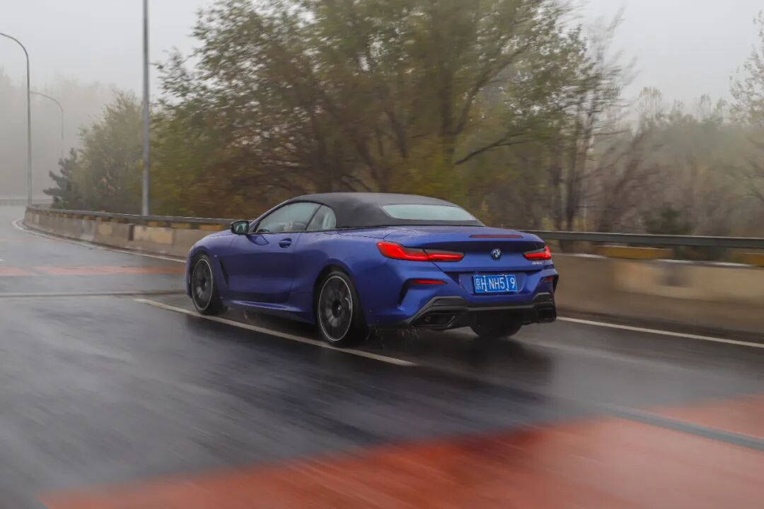 底盘厚重感对于一台宝马车型来说无需多言,恰到好处的悬架调校则是工程师功力的展现。这台敞篷版8系的悬架在初段调校的十分柔和,毫不夸张的说与7系这种行政级轿车差别很小,对于路面上的颠簸化解的游刃有余,巡航驾驶足够惬意。在比较激烈驾驶的条件下,悬架在过了柔和阶段后,支撑性也是相当到位,能够将车身干脆利落的拉住,毕竟操控的灵魂不能丢。