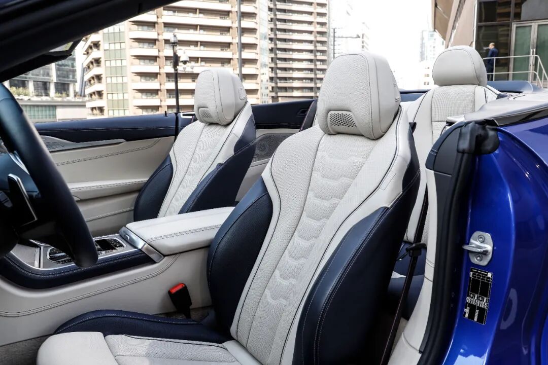 对于这台敞篷版8系而言,前排两个座位则是整车的“坐上席”,配置上也绝对是无微不至,除了常规的座椅通风和加热之外,还配备了颈部暖风系统,能够给您提供更多打开敞篷的机会。