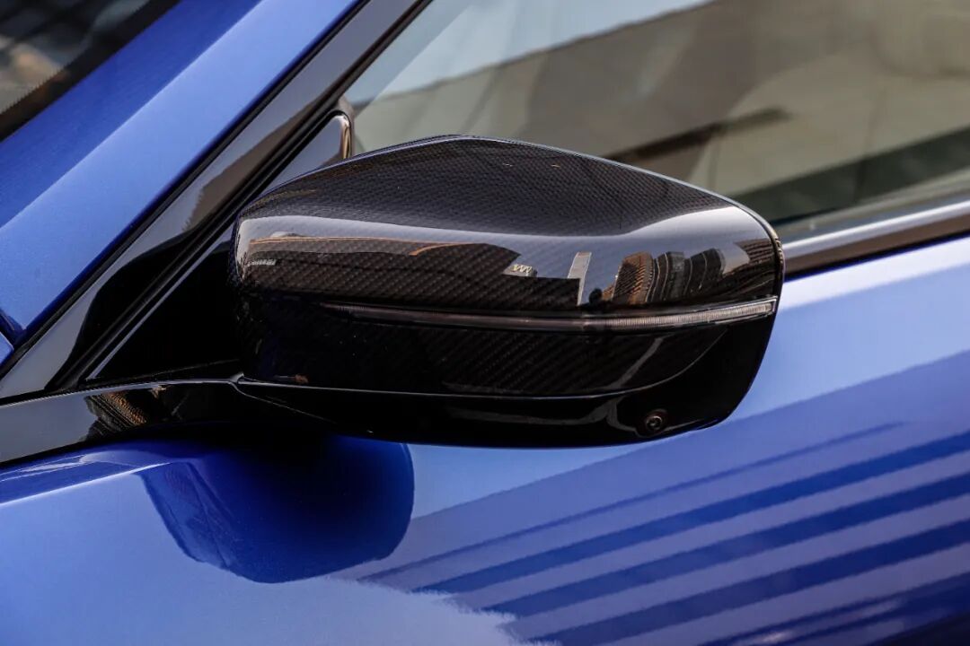 双肾型进气格栅拥有“光幕”设计,内部的LED氛围灯可在行驶过程中或车门开关等场景下,提供较为个性的光影化视觉效果。这台试驾车加装了M碳纤维外观组件,运动属性拉满,但也需要额外花费35000元。