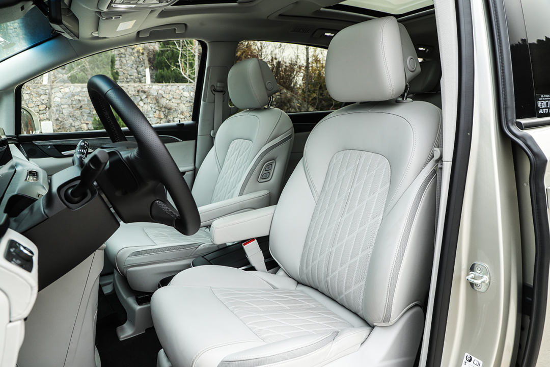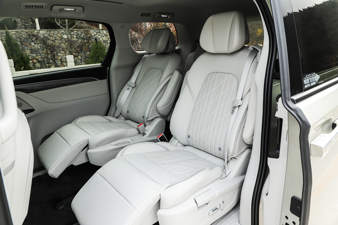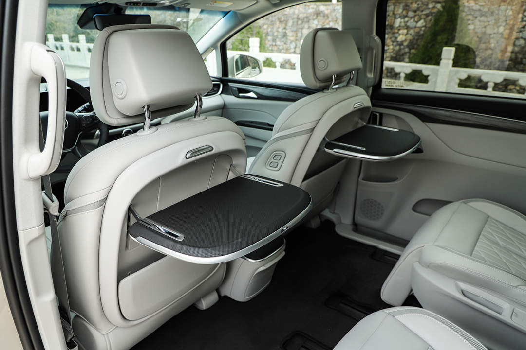 第二排配备的是非全包覆式独立座椅,以便于儿童安全座椅的安装以及乘客上下车/进入第三排,相比全包覆式独立座椅,能够更好地适应家庭用车场景的需求。在高配车型上,第二排座椅多向电动调节(含腿托调节)、座椅加热/通风、后排小桌板等配置同样不会缺席。