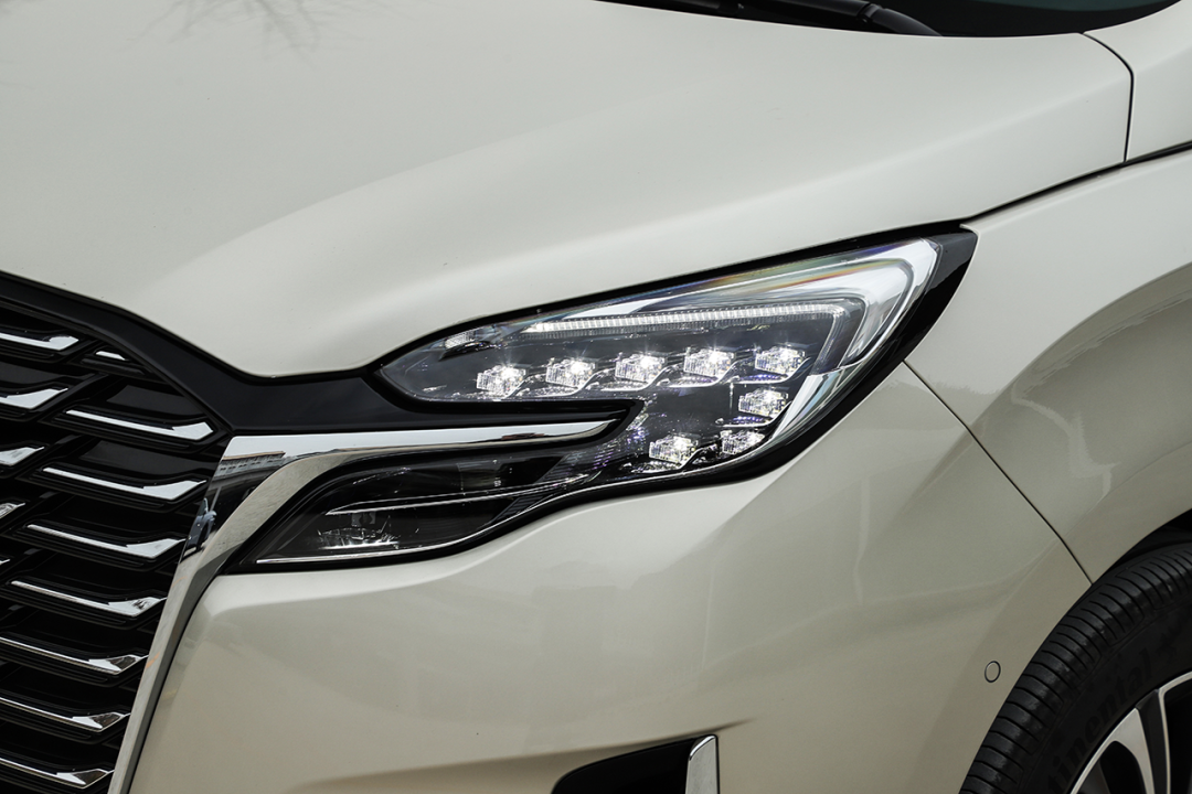 灯组内部由多颗LED发光模块组成,带来的精致感足够出众。功能方面,自动大灯、LED日间行车灯、大灯高度可调等均有配备,更高级的矩阵式LED大灯依旧是Avenir艾维亚车型的专属。