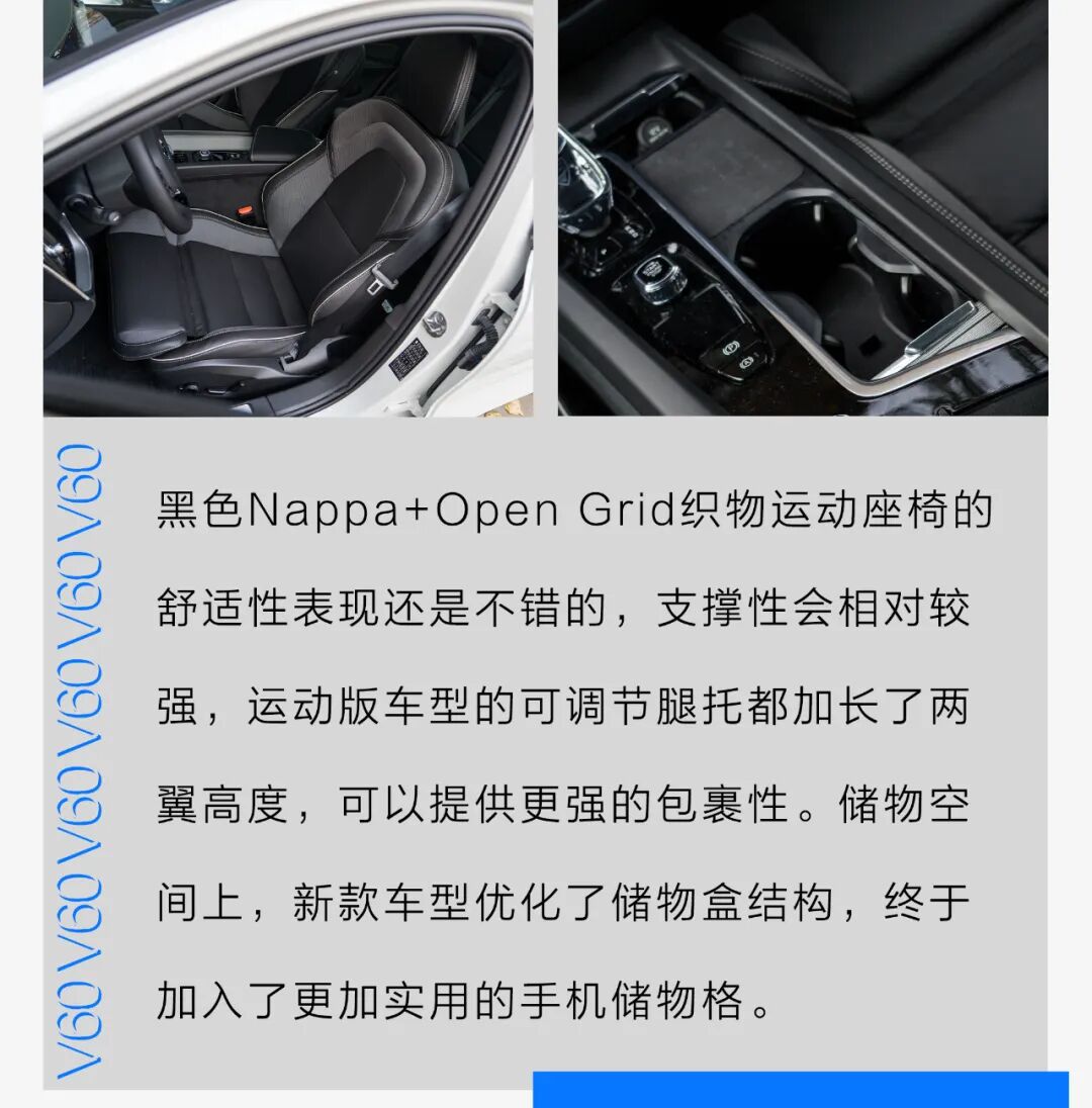 此外,前排储物格的改变也非常实用,解决了此前老款车型前排没有位置合理放置手机的问题。这些改变看似不多,但带来的提升却是显而易见的。让这台诞生自瑞典的经典旅行车有了更多购买理由。
