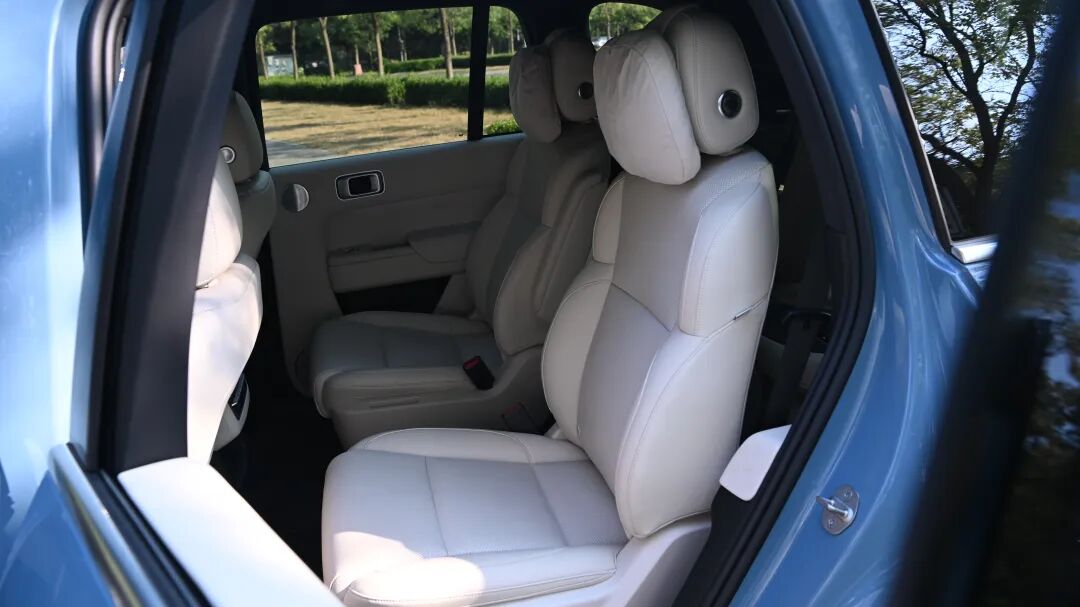 理想L8的座椅椅形较为宽大,座椅内部填充较为饱满,坐下时有一定的陷入感,舒适性毋庸置疑,实拍车型第二排采用两个独立座椅,除了配备独立空调外,座椅通风、加热、按摩功能也都没有缺席,这一点对于有老人和小孩的家庭来说,非常友好;此外在车顶还配备了15.7英寸娱乐屏幕,后排的娱乐体验也更加丰富。