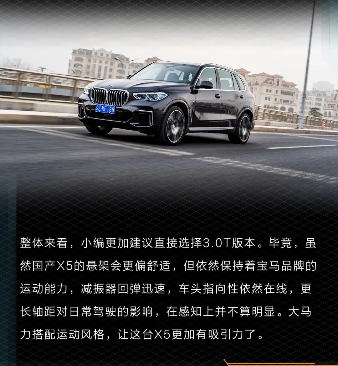 目前,国产宝马X5的厂商指导价为60.50-77.20万元,提供2.0T四缸发动机与3.0T六缸发动机可选,均匹配8挡手自一体变速箱与xDrive四驱系统。