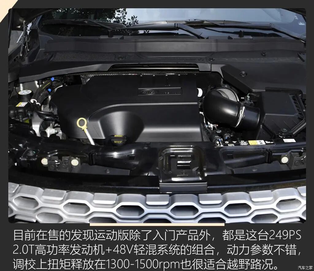 试驾的发现运动版搭载2.0T高功率发动机+48V轻混系统,低转速时扭矩就可以有效地输出,这也是针对户外和越野场景下的特别调整。配合发动机的是9速自动变速箱,挡位多换挡逻辑也比较清晰,城市和户外都可以选择适时的挡位来行进,这套动力系统也同样出现在极光的身上。