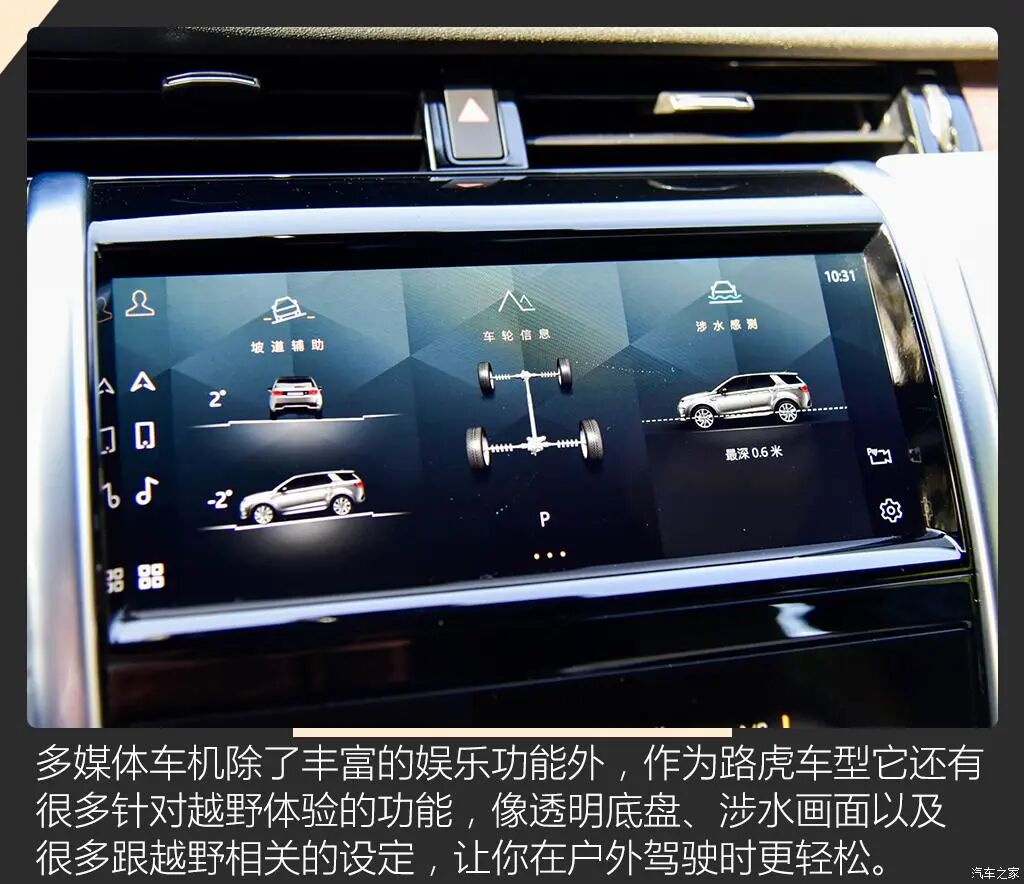 而它不仅仅是可以在户外干脏活累活,作为豪华中型SUV,内饰的感受也很重要,虽然发现运动版不是路虎最新的一套风格,但选材用料以及做工和多媒体的搭配都没有问题,家庭客户选择的话檀黑+云白的配色可以增强它的豪华感。