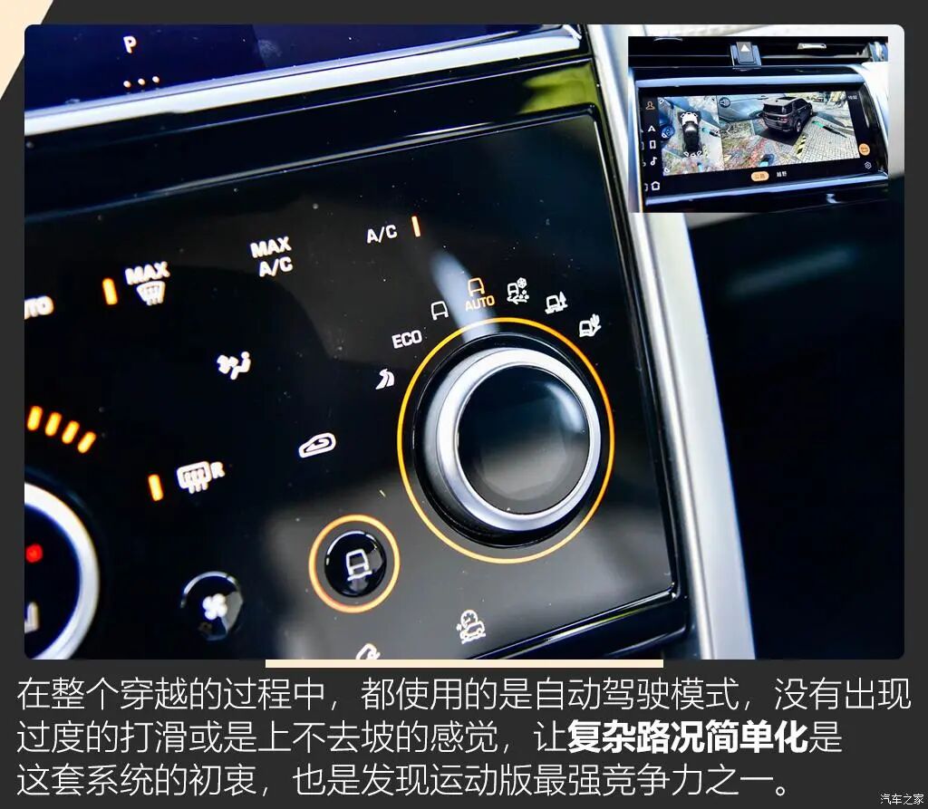 这时发现运动版标配的ATPC全地形进程控制与Terrain Response®第二代智能全地形反馈适应系统就可以让你的越野驾驶更加轻松愉快,它可以在2-30km/h时开启,就像越野中的自适应巡航一样,不过应对的路面状况更加复杂。在爬坡和下坡时它可以更精确的掌控刹车和油门,配合ABS系统把车速控制的更合理,对于驾驶者而言只需看好路况转动方向盘就行。这套系统也以驾驶者为优先级,如果踩下刹车后会按照减速后的时速行驶,加速也是如此,保证安全的同时它就像个经验更老道的越野教练,帮你驶过崎岖不平的道路。