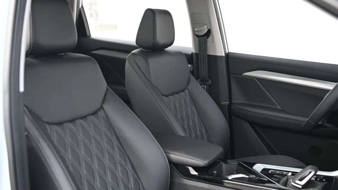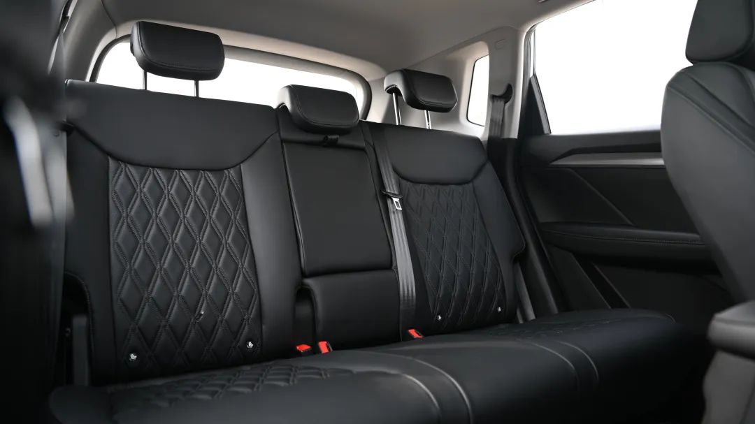 实拍车型前排采用黑色皮质座椅,主驾驶提供电动角度调节功能,座椅靠背内部填充较为饱满,舒适性比较出色。第二排地台接近纯平状态,2750mm的轴距带来的腿部空间较为充裕,在配置上新车提供中央扶手以及空调出风口。