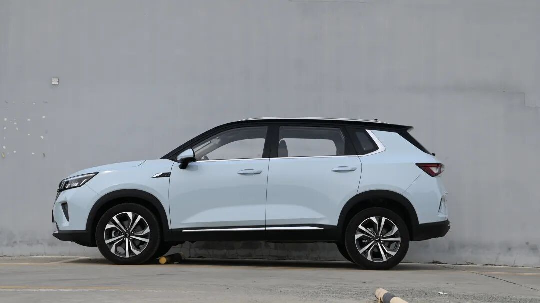 在尺寸方面,星辰混动版和燃油版本车型保持一致,4594mm的车长和2750mm的轴距表现,放在紧凑型SUV中属于中上等水平。车侧微微上扬的腰线和双色车身为整车增添了几分灵动气息,极地冰蓝涂装也是混动版本车型的专属。