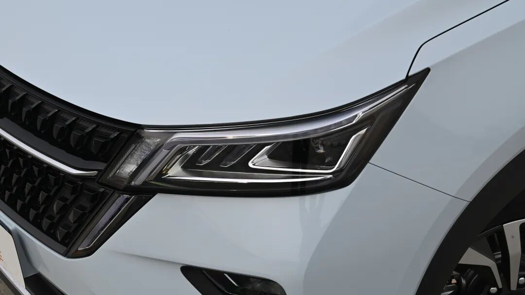 眼前的这台五菱星辰混动版采用家族最新的设计语言,较大尺寸的进气格栅和V型排布的中网装饰更显犀利,大灯组造型格外锐利,日行灯带采用双段式设计,走向和中网过渡得当,耐看且不乏精致感。