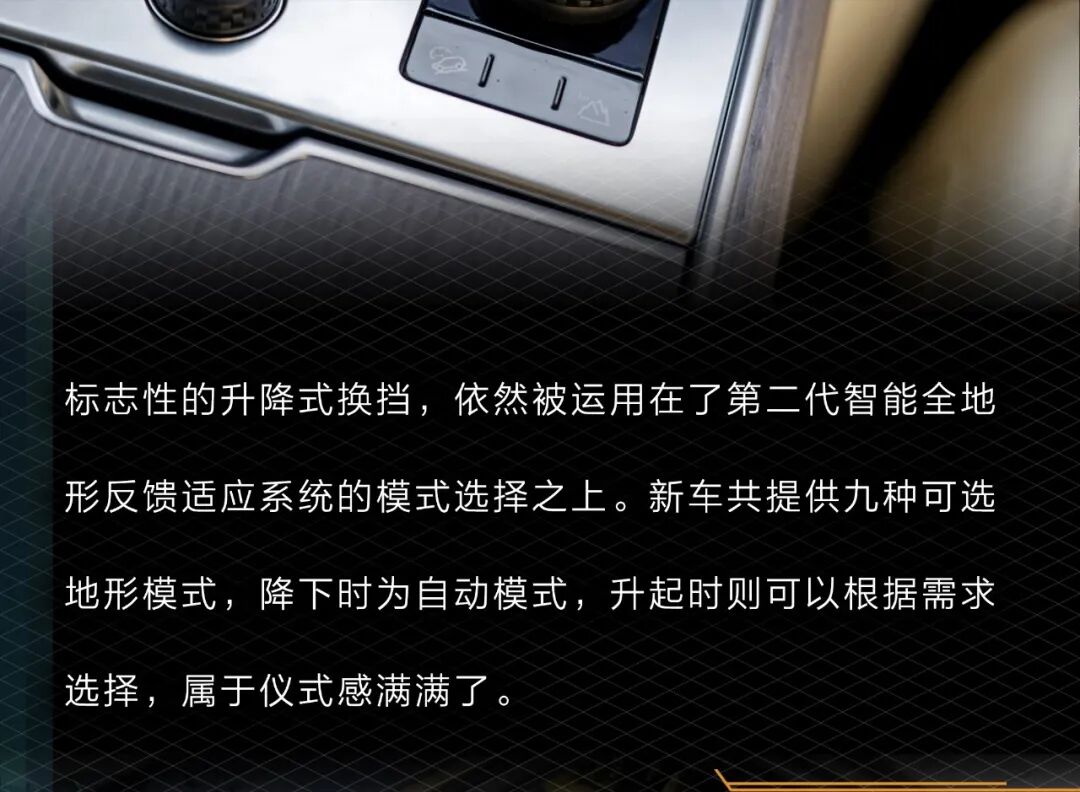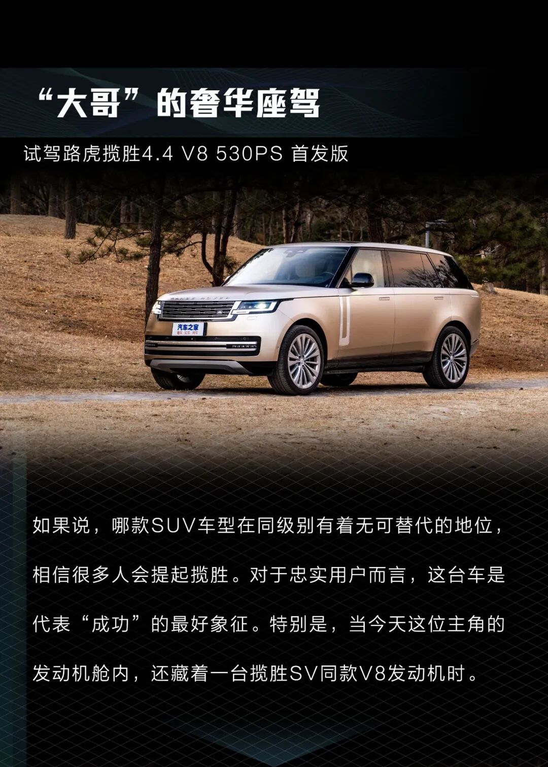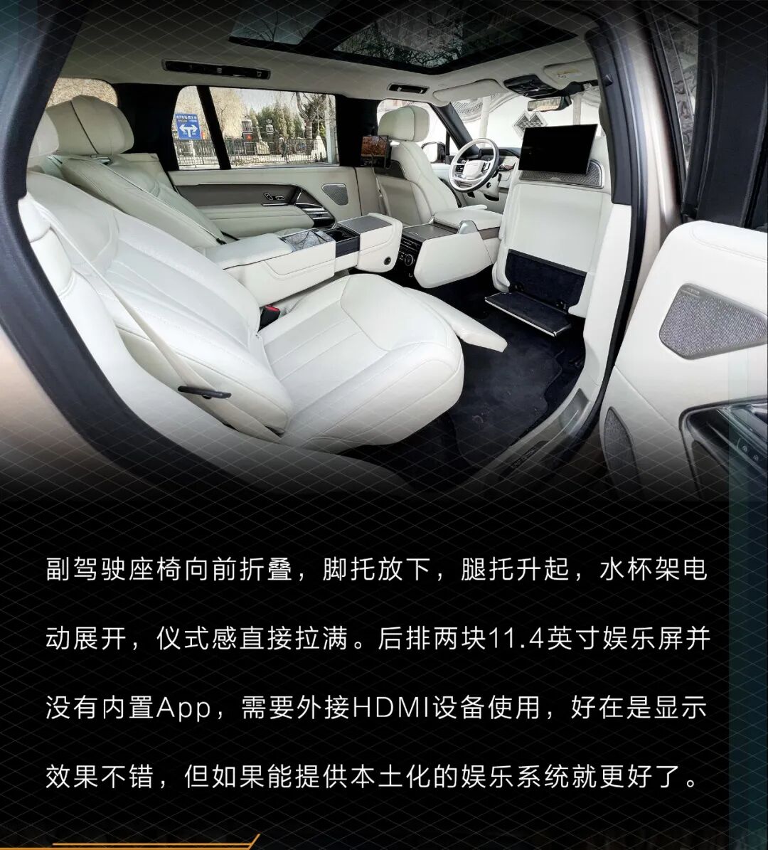 从各个角度看,这台路虎揽胜530PS首发版都是一台非常称职的百万级SUV,全新的MLA-Flex豪华电气化架构,引入了第二代自适应动态系统以及第三代主动降噪技术。无论是自己驾驶时,还是“北京瘫”在后排行政座椅中,都能获得非常不错的感受。
