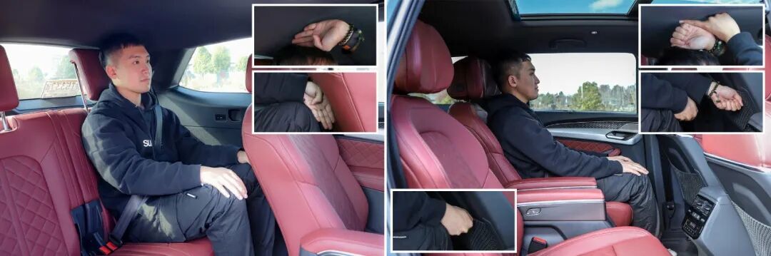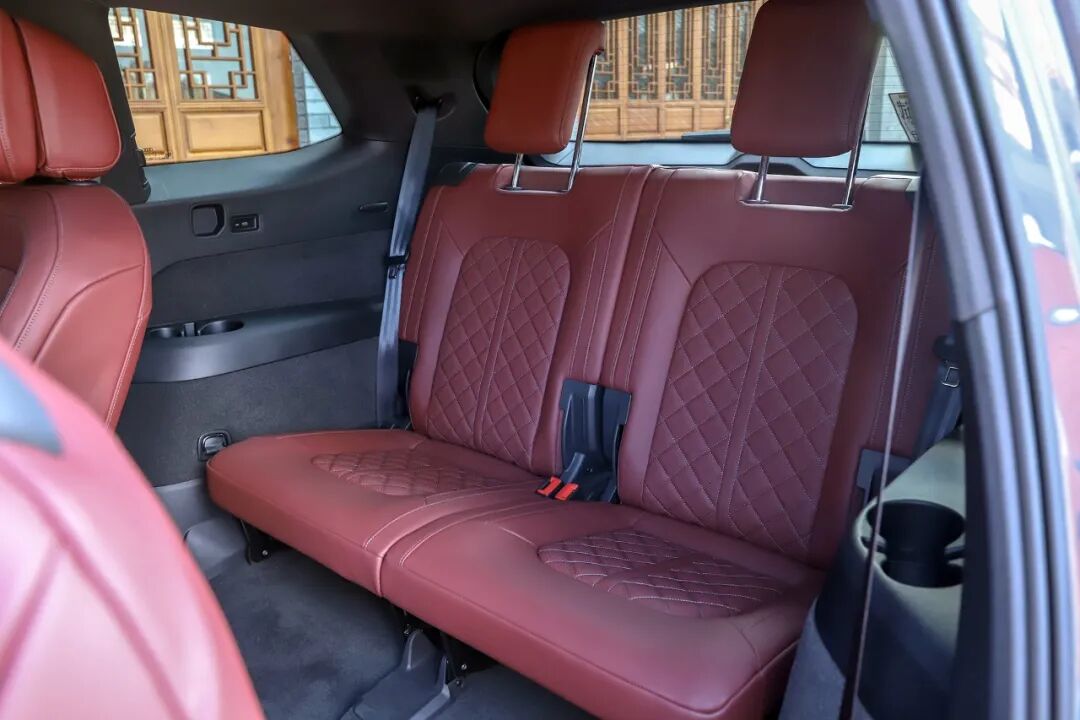 第三排座椅造型相对宽大,而且配备有杯架和电源接口。空间方面,身高178cm的体验者在第二排头部空间1拳1指,腿部最大空间超2拳。在第二排腿部空间保持1拳时,第三排腿部和头部都可获得4指的空间。