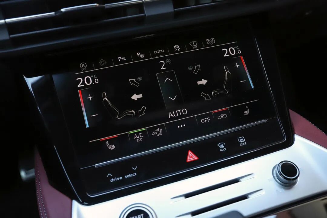 这块8.6英寸屏幕在触控操作时同样带有振动反馈,其主要用于控制空调系统,同时也设置有驾驶模式切换、座椅加热、车身稳定系统、自动泊车等功能的触控按键。