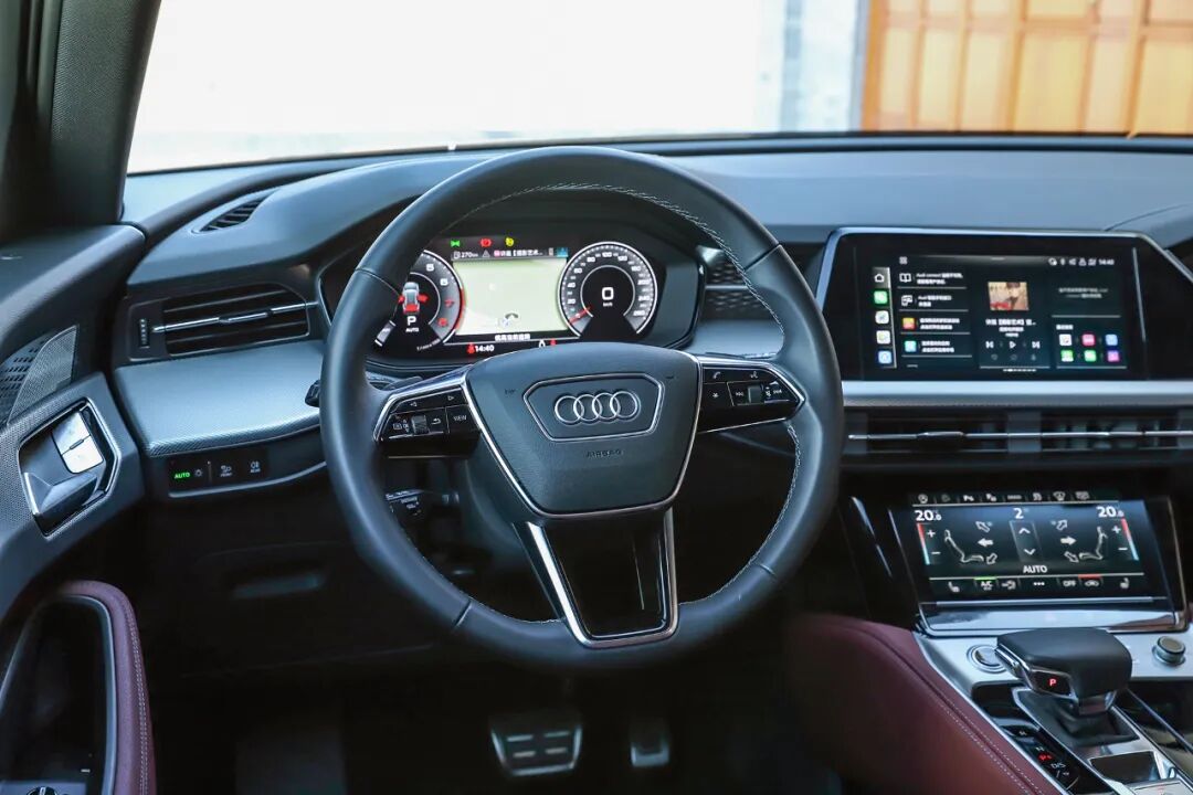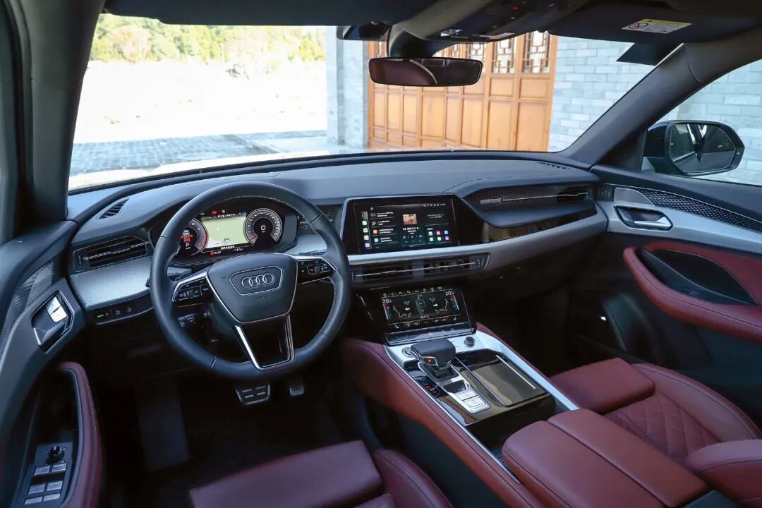 来到车内,奥迪Q6同样配备有三块大屏,不过中控台采用新设计,立体感出色。从中控台延伸至门板的线条形成环抱式设计,可带来更敞亮的视觉感受。在做工用料层面,这台Q6丝毫不含糊,中控台顶部采用软性皮质包覆,再辅以缝线点缀,豪华感、品质感自然显现。