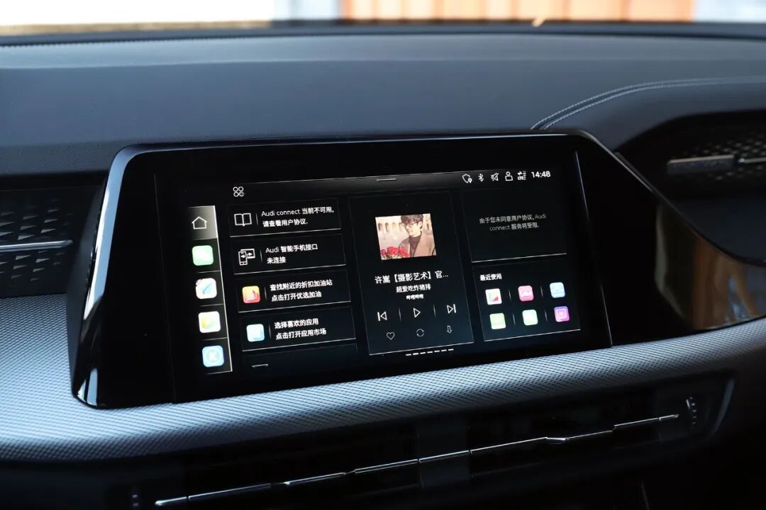 中控大屏为10.1英寸,其搭载的第三代MMI支持下载第三方App,所以各位能在车机系统看到微信、爱奇艺、哔哩哔哩、腾讯视频等应用,本土化做得不错。此外,无线CarPlay、全景影像、车联网、语音识别控制等功能也没有缺席。