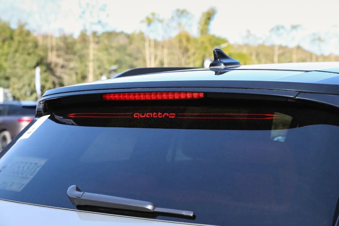 车尾视觉效果敦实稳健,贯穿式尾灯在点亮之后辨识度出众,黑色品牌标识位于灯组中央,此外车尾文字标识也采用黑色涂装。在刹车时,除了高位刹车灯点亮之外,Q6还会在后风挡投射quattro字样,颇有新意。