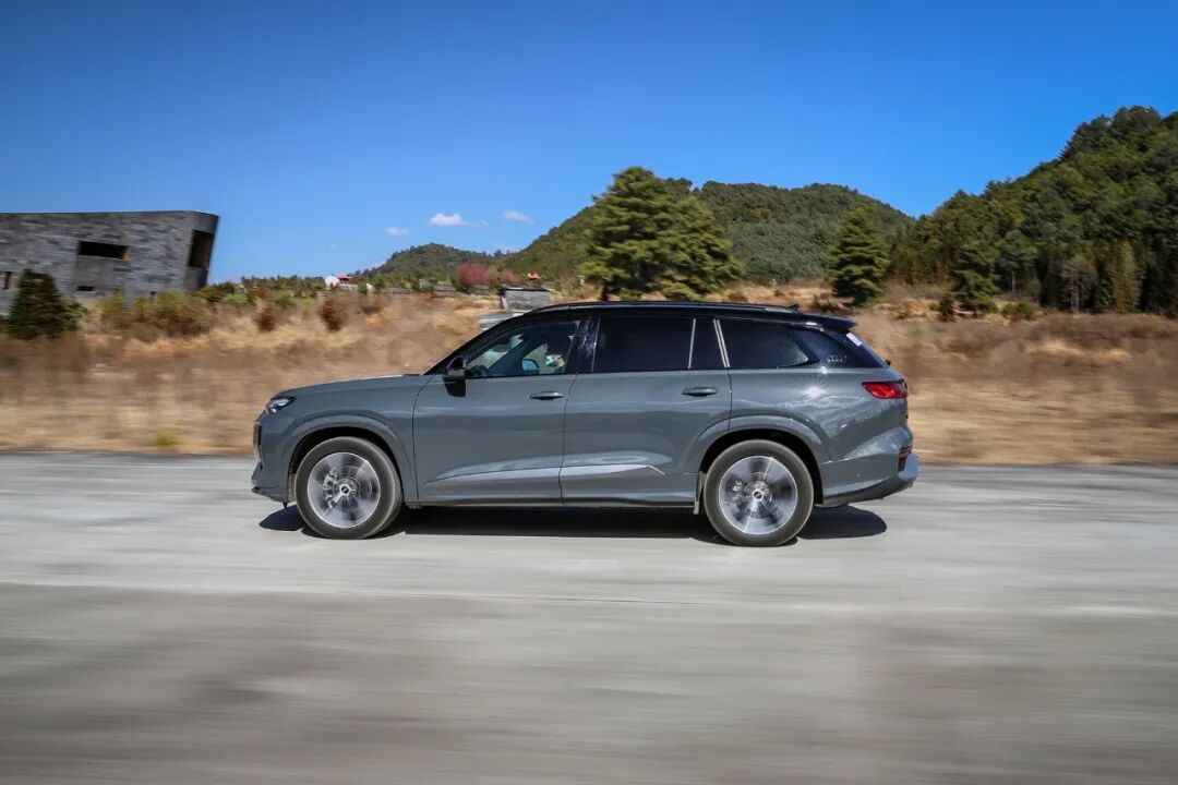 悬架采用前麦弗逊式+后多连杆式独立悬架的组合,调校标定更偏舒适取向,通过路面接缝以及碎石路这种连续小颠簸路段时悬架可从容应对,经过减速带时也会将“棱角”剔除,干脆利落且基本没有冲击感。不过作为一款豪华品牌车型,底盘扎实感、紧绷感还有提升空间。在山路正常行驶悬架可以给予合适的支撑,不会有明显的“忽忽悠悠”之感。Audi Q6|结语