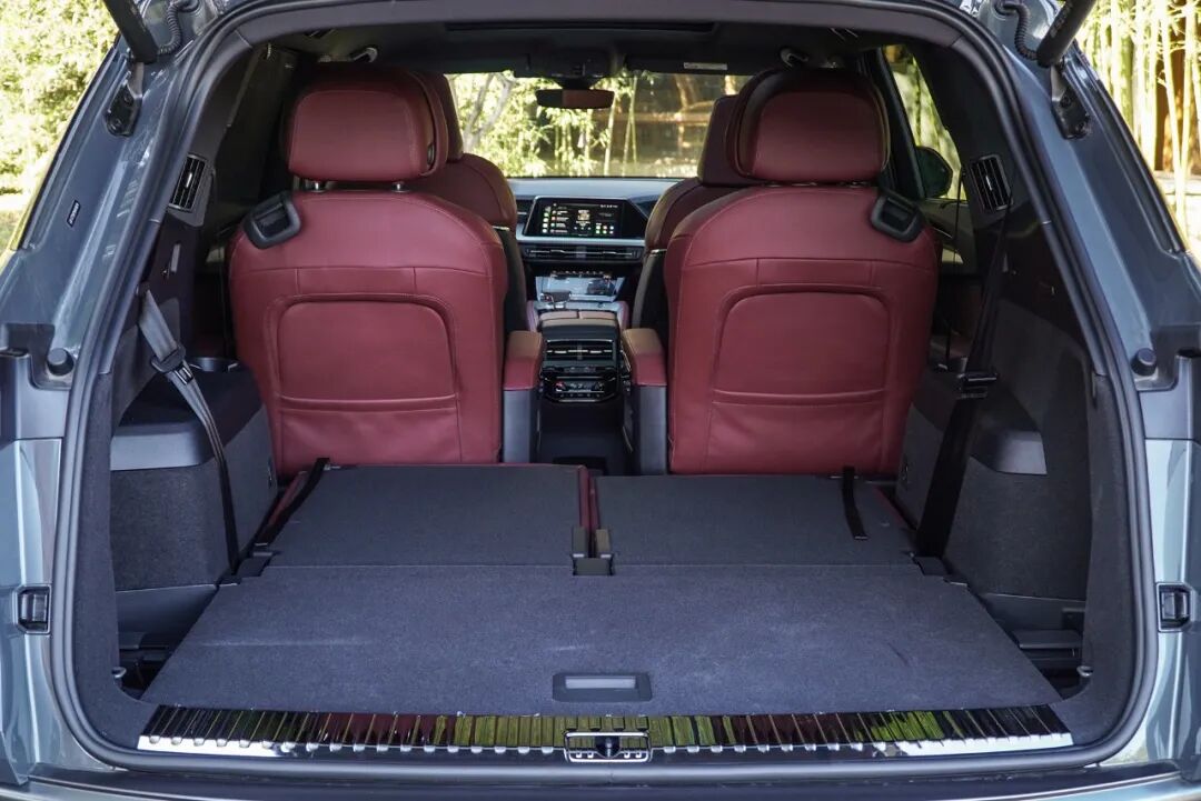 后备厢地板平坦规整,6座状态下后备厢容积286L,第三排座椅靠背支持按比例放倒,后备厢空间也因此可以灵活扩展。官方资料显示,奥迪Q6后备厢容积最大可达2398L。