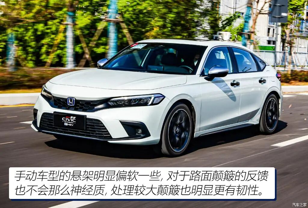 底盘部分,没有想到自动与手动车型,在设定方面居然有着明显区别。两款自动变速箱车型,混动版本与1.5T CVT车型的底盘行驶感受保持一致,对于路面细碎颠簸的过滤并不会很彻底,甚至悬架系统会将路面颠簸较为清晰的传递给车内。