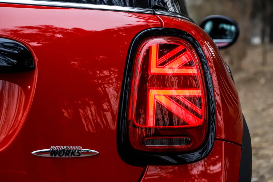 中置双出的排气布局与COOPER S版本没什么两样,这也是2.0T车型才有的设计之一。米字旗尾灯内部结构精致,点亮后辨识度极高。
