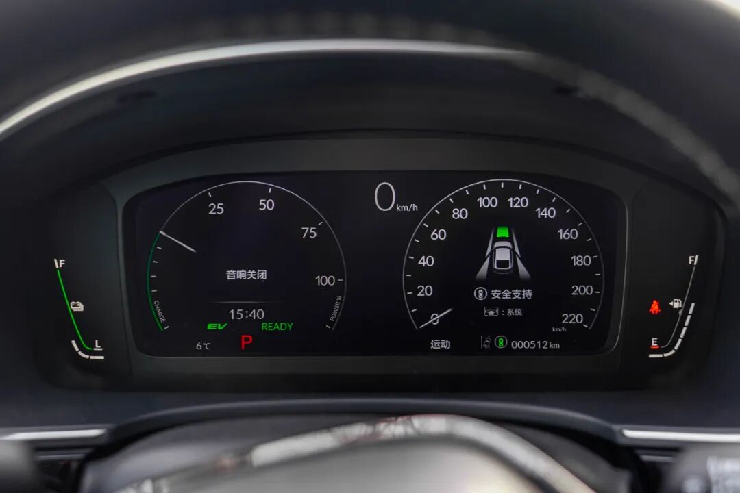 型格HATCHBACK e:HEV提供经济、标准和运动三种驾驶模式。经济模式略带慵懒,适合日常驾驶,能让驾驶者轻松控制扭矩输出,应对城市路况稀松平常。如果行驶中需要“见缝插针”,大脚油门即可,动力表现也不会让你失望。