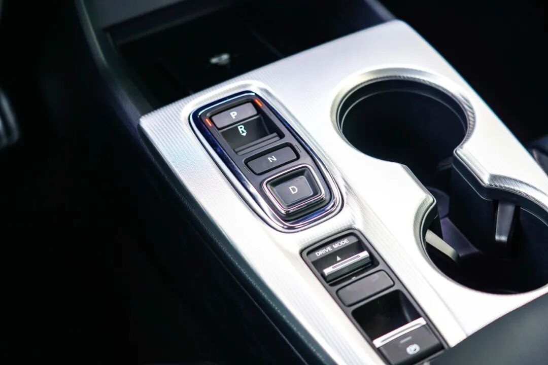 区别于燃油版车型,换挡机构处混动版车型采用了按键形式,而这也是本田一贯的手法。