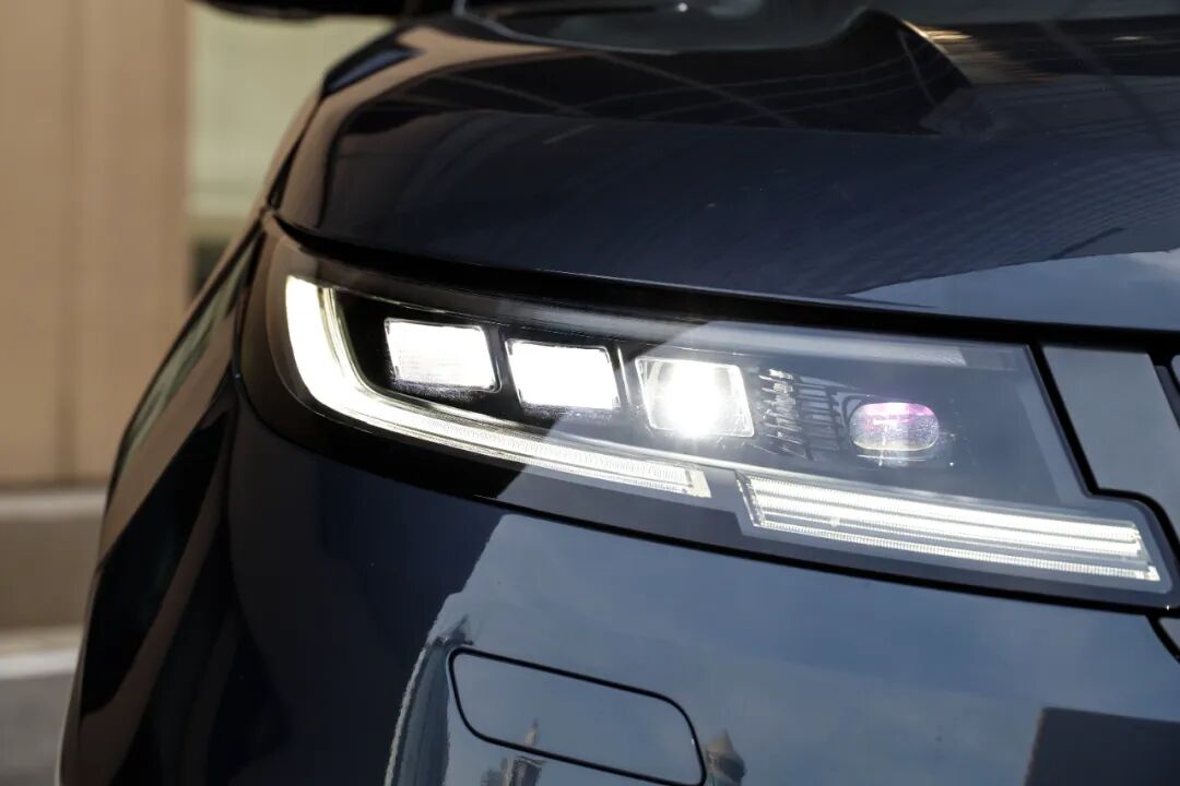 官方称之为动态投射式数字LED大灯组内部简约且精致,拥有自适应远近光、自动头灯等功能 ,它还可以遮挡前方最多16个物体,避免给对向车辆和行人造成眩目。另外,该灯组在这台首发版车型上是标配,而其它车型则需要额外花费14000元进行选装。