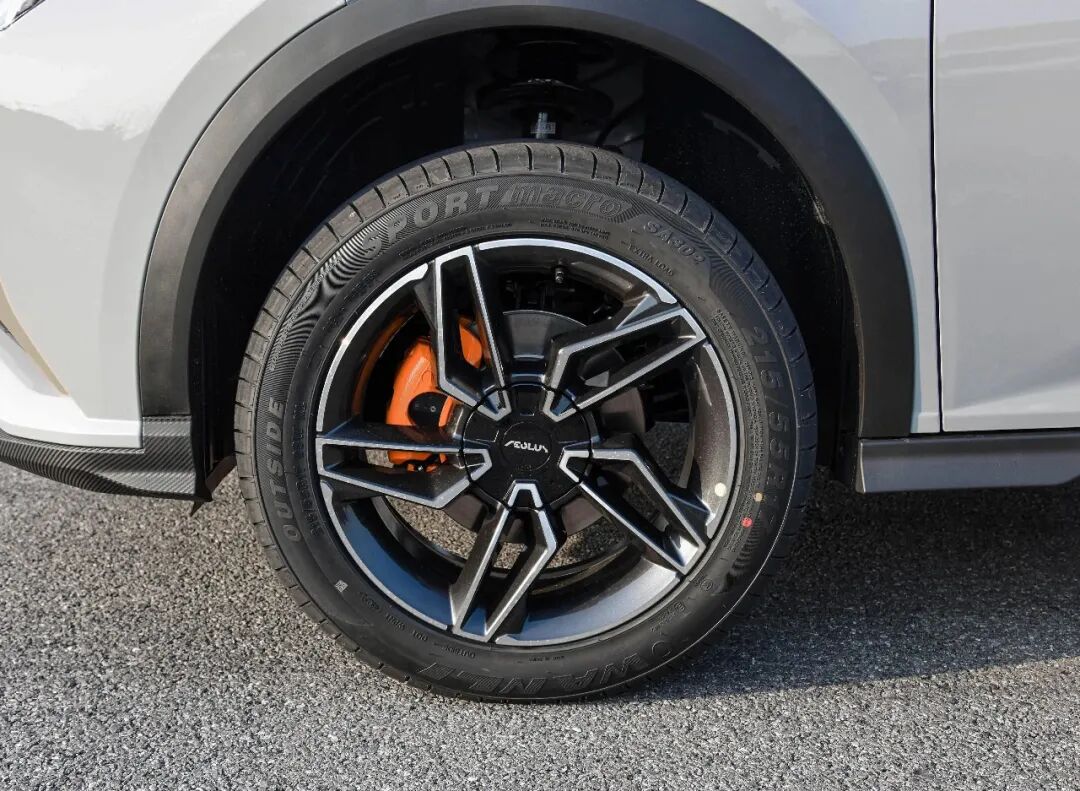 五辐双色轮圈的造型够前卫,内部还采用了橙色卡钳,活力满满。匹配的轮胎为万力S PORT Macro SA302系列,该轮胎采用非对称胎面花纹设计,主打运动操控,性价比超高。