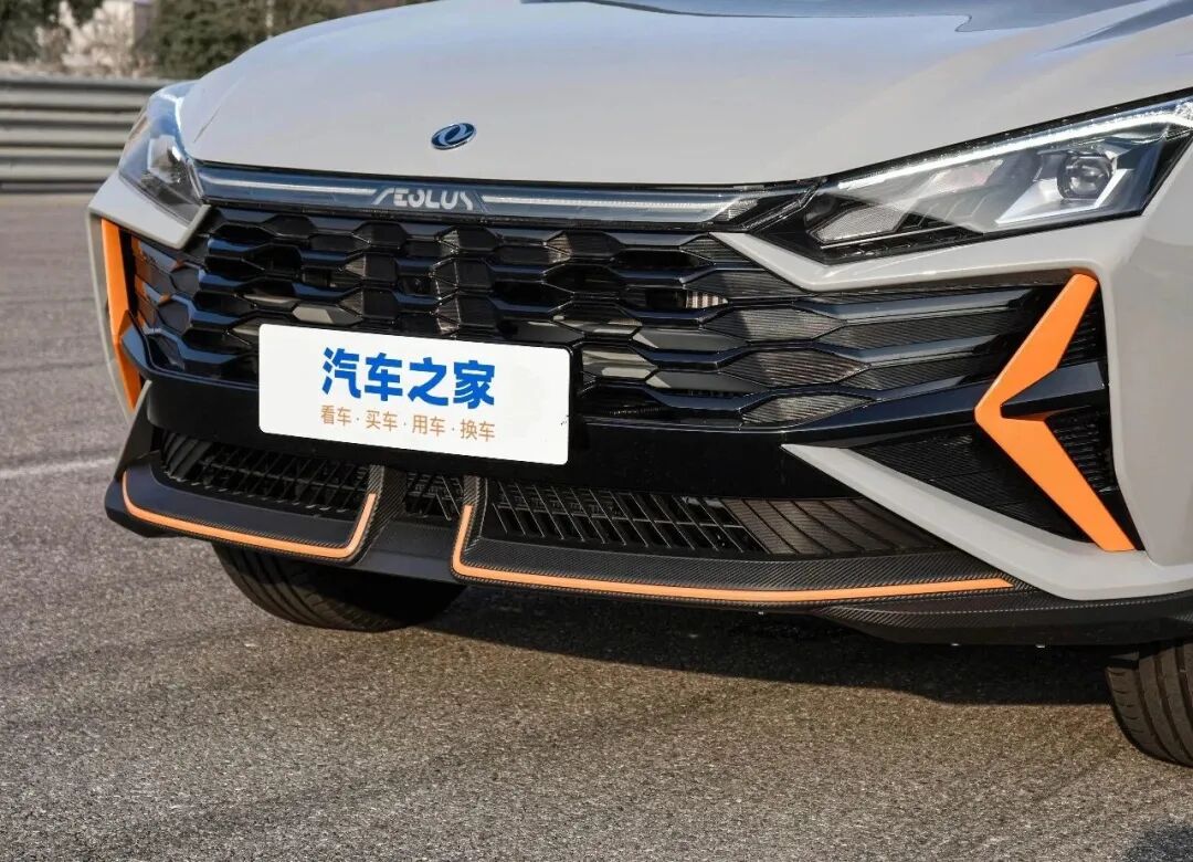 格栅尺寸相当夸张,近乎占据了整个车头,给人带来十足的压迫感。内部采用蜂窝状中网,样式足够精美。两侧造型酷似回旋镖的橙色饰条,对于运动感的提升有很大帮助,也能提升车头的辨识度。