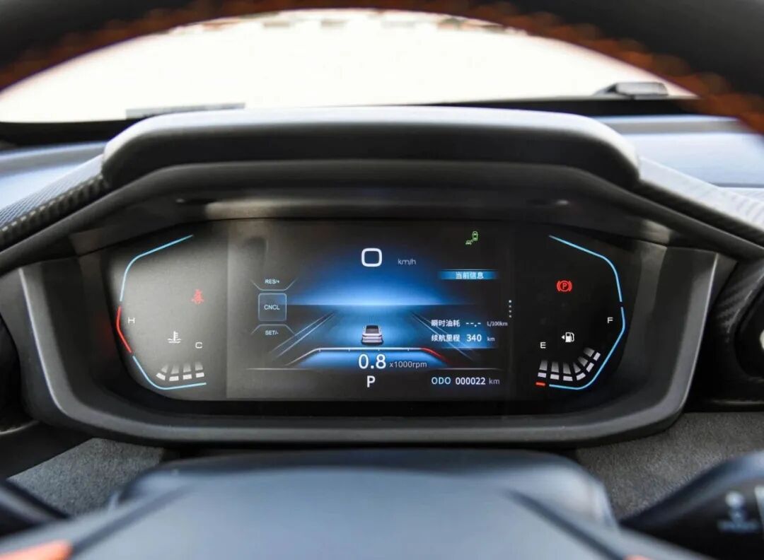 中控屏做了类似于全液晶的设计,很讨巧,不过仅中间部分为液晶屏,尺寸为7英寸。UI设计较为简洁,功能分布清晰明了,只是分辨率有待提升,可结合售价来看,这似乎也合情合理。