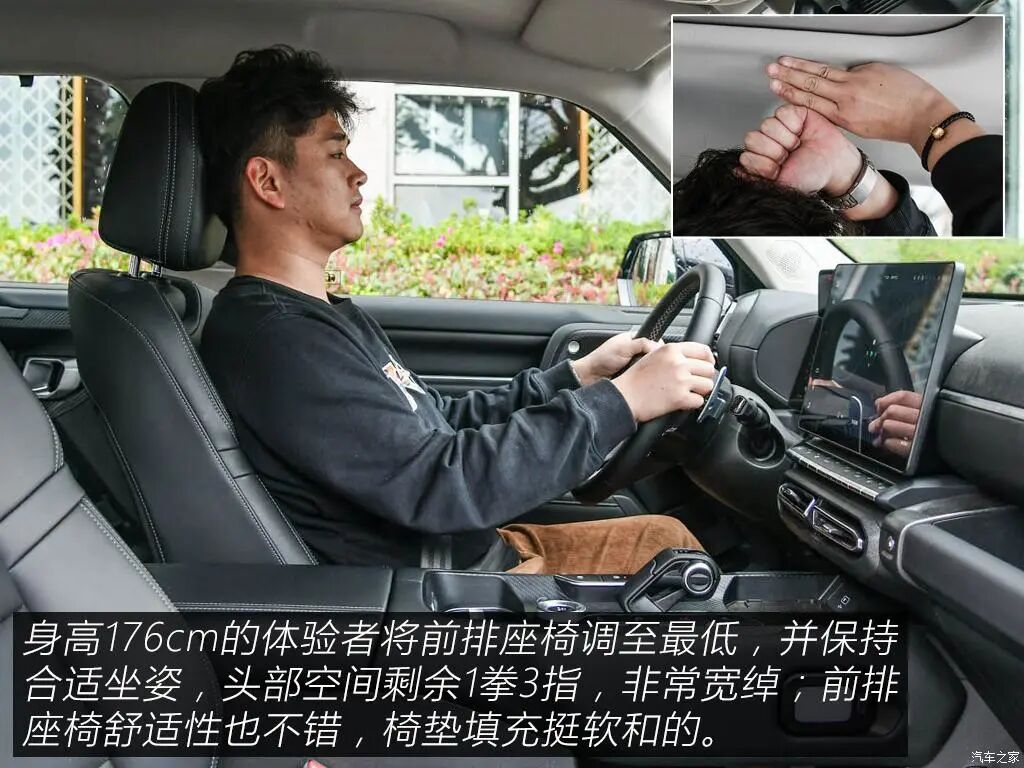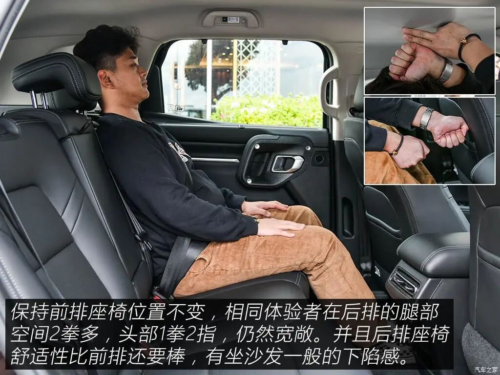 对于有硬派取向的SUV来说,我们一般是不太追求乘坐空间和座椅舒适性的,但是在二代大狗上,大家通过上边的体验图可以看出来,空间还是很好,三四口之家每个成员都能坐得很宽敞。并且座垫的柔软程度也很好,尤其是第二排座椅,有很明显坐沙发的感觉。