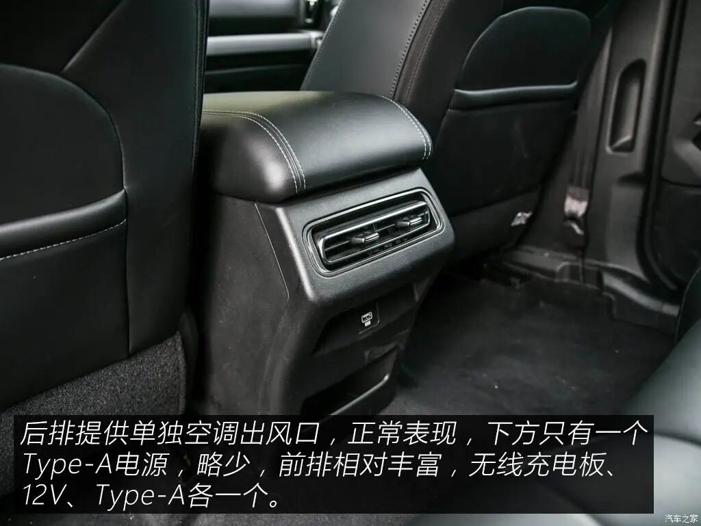 载物空间方面,车内的储物空间非常丰富,首先值得一提的是前后门板上除了常规杯架储物格之外,还有一个织物的绑带,可以放下1L容量的饮料瓶,并且这种设计给人的感觉也非常野性。其次就是中央扶手箱的表现很好,除了可以分层使用,里边的容积也非常大。最后,副驾前方那个看似扶手的造型,除了能作为扶手使用,里边还是一个长条形的大储物空间,放手机、折叠伞都没任何问题。