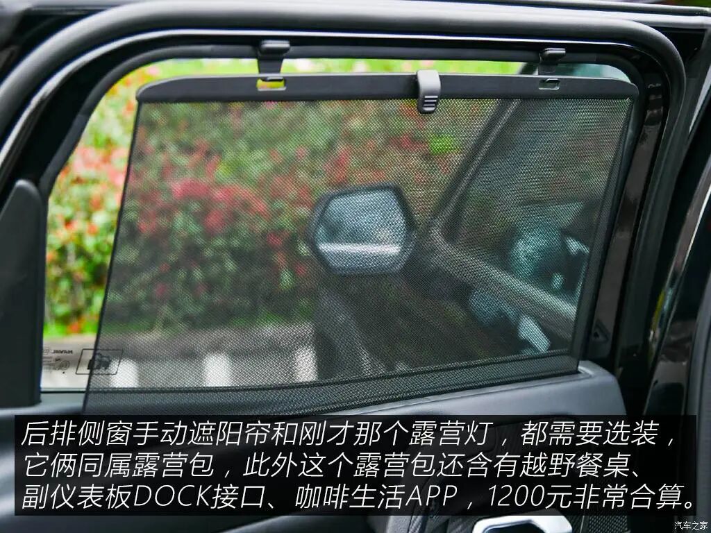 其他配置像是全景天窗、后排空调出风口,对于一台中型SUV来说其实都算是常规操作。不过二代大狗也有自己独特的思考,比如中控地台副驾驶一侧的露营灯,它不仅有多种点亮模式,还能直接吸附在车门等钢铁材质的覆盖件上,使用起来会更加方便,设计师确实用心了。唯一比较遗憾的是,这个配置全系都需要选装,它是一个选装包,1200元,还包括后排手动遮阳帘、折叠餐桌等等,我认为非常值得。
