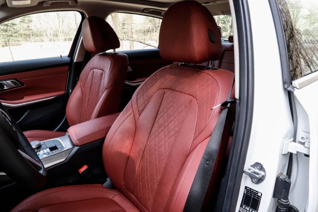乘坐感受上,i3相比3系来说车内的地台要略高一些,但通过更全面的人机工程学设计,空间并未有太多的影响。前排座椅的填充物厚实,两侧的护翼也能够很好的包裹住身体,手动腿托也是个提升舒适性的加分项。