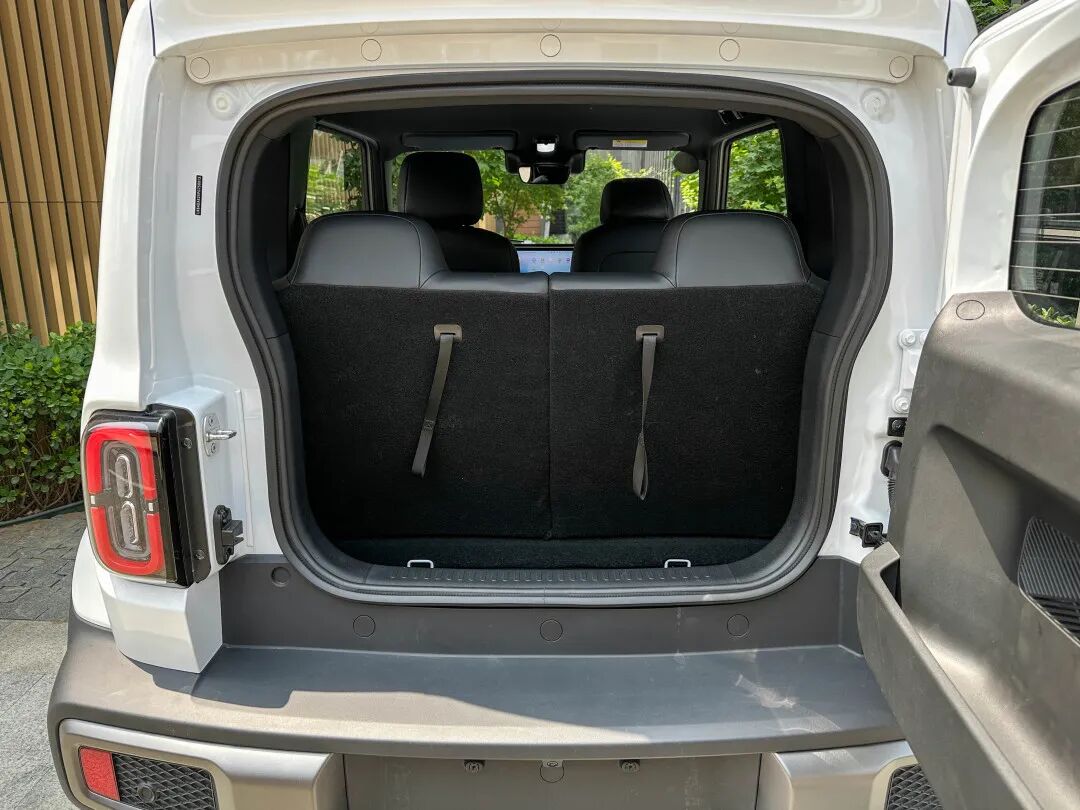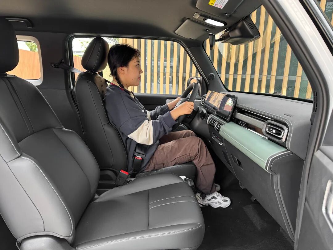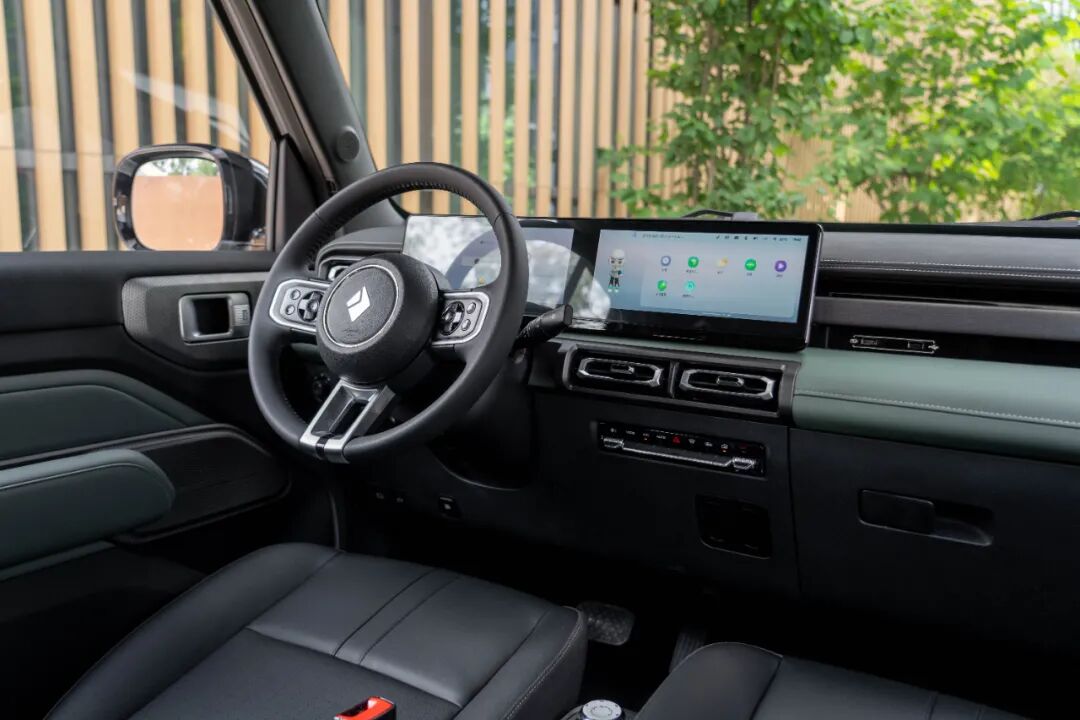 侧踏板、越野风格的后护杠加之侧开式的尾门,“硬派”的风格属实到位了。实拍车辆还选配了支持个性化改装的Car-watch,形似备胎“小书包”的妙语屏可通过DIY文字、图片、视频等,展示创意想法、信息交流及人车交互,具体玩法可以参考上面的视频。