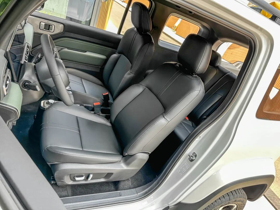 前排座椅均采用皮质包裹,实拍车辆支持主副驾电动调节,副驾驶还配备了电动的翻折与复位,方便后排乘客上车。整体来看,其后排还是具有不错实用性的,但后排座椅立起后,后备厢空间就不算理想了。