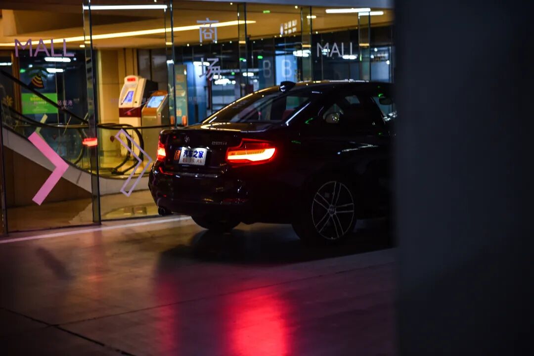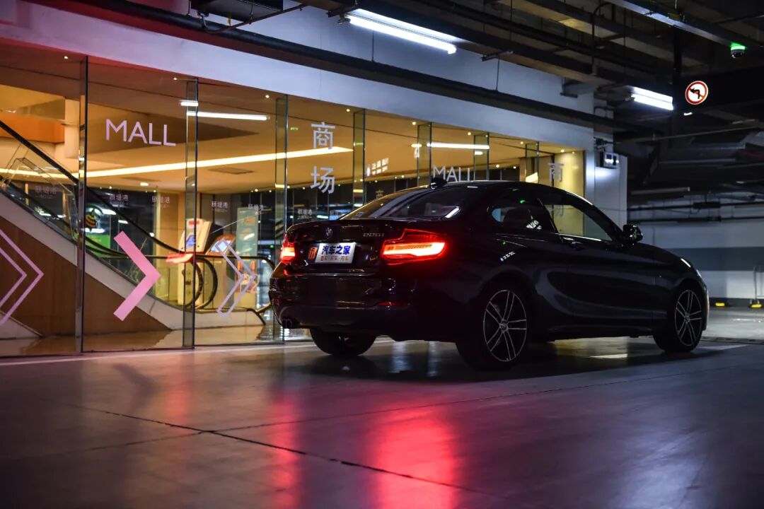 从斜后方来看,我认为是这台225i最好看的角度。短小的车尾展现出的更多的是精致的味道,亮起LED尾灯且游走在灯光昏暗的地库当中,才是这台车最为正确的出场方式。