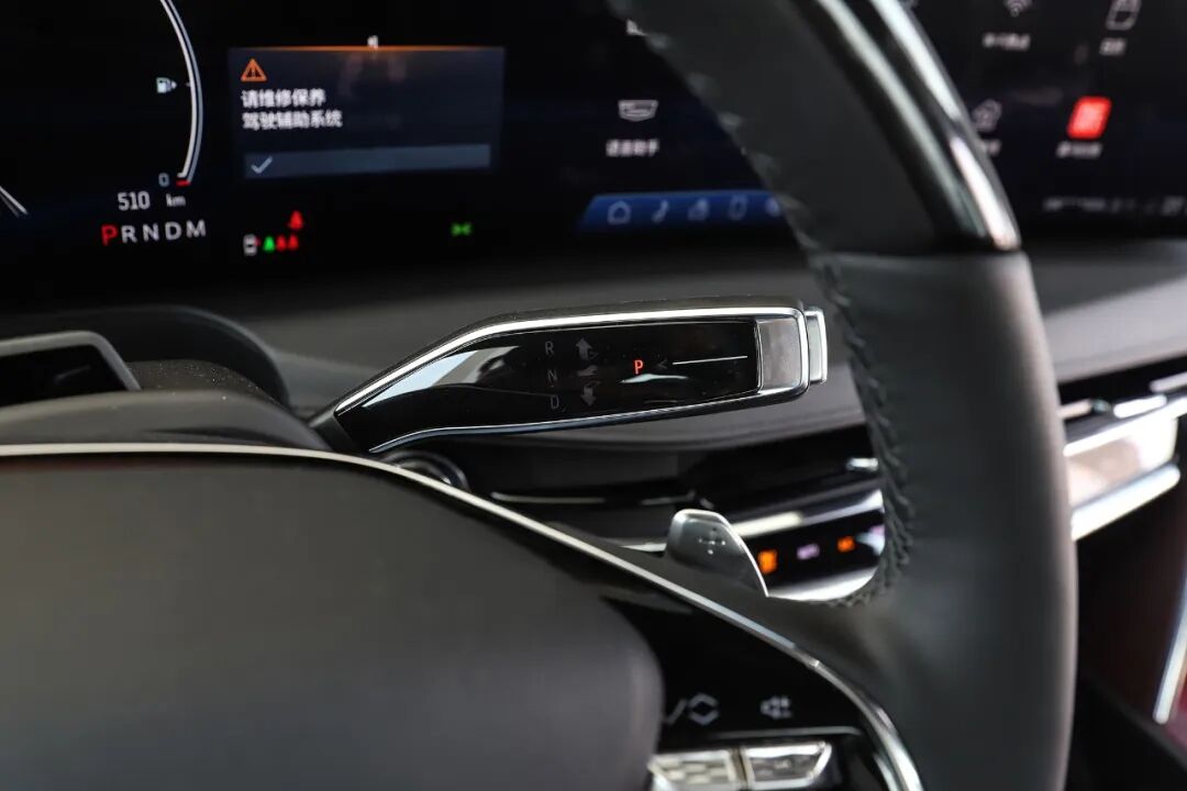 方向盘转动阻尼适中,指向性以及车头响应都还不错。较大的方向盘尺寸以及饱满的握感都与这款产品的定位形成契合。10AT变速箱逻辑清晰且存在感不强,基本不到2000rpm就会升挡,而且降挡速度也不错。