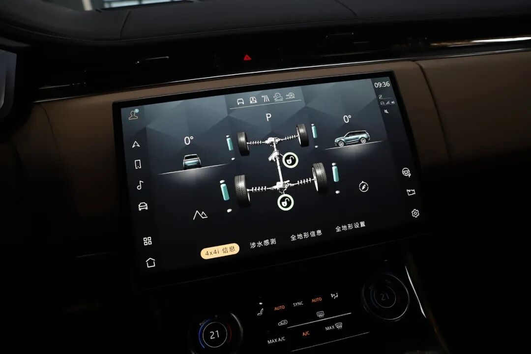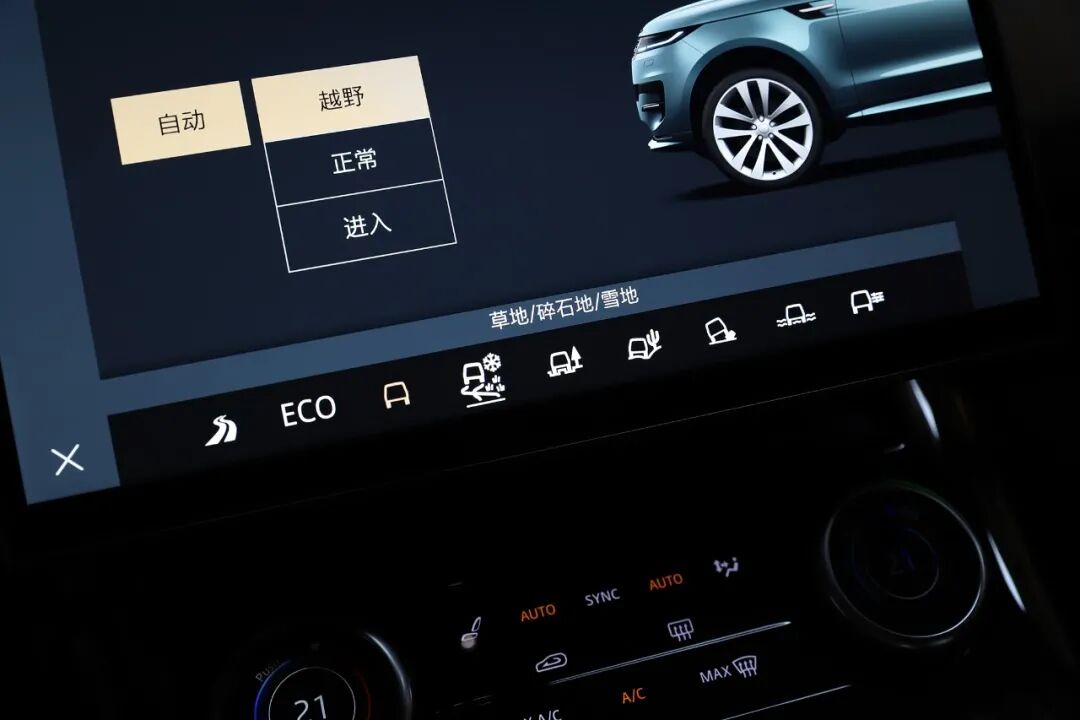 第二代智能全地形反馈适应系统提供动态、经济、舒适、草地/碎石/雪地、泥泞/车辙、沙地、岩石爬行、涉水、可配置共9种驾驶模式,同时还额外提供一个AUTO自动模式,此模式会根据各种行车数据以及环境输入来选择合适的驾驶模式。